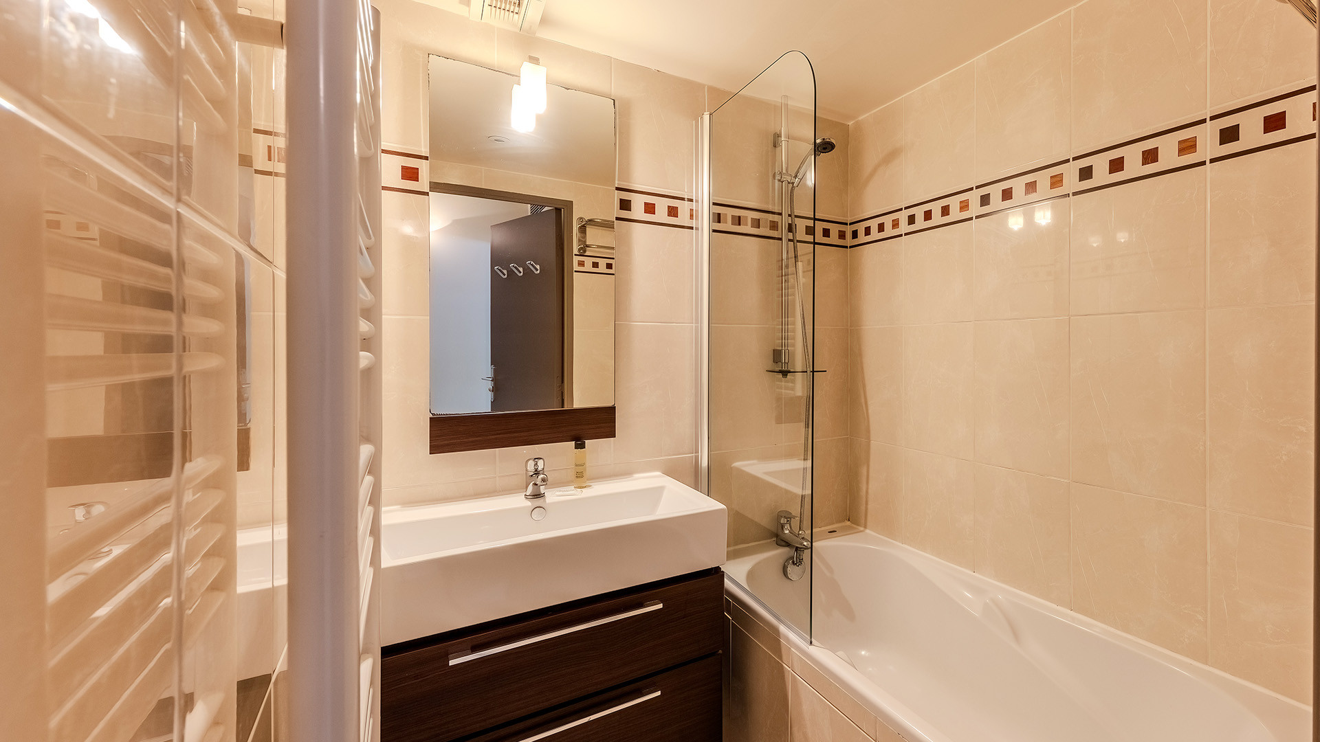 Bathroom: bathtub + shower and separate toilet.
