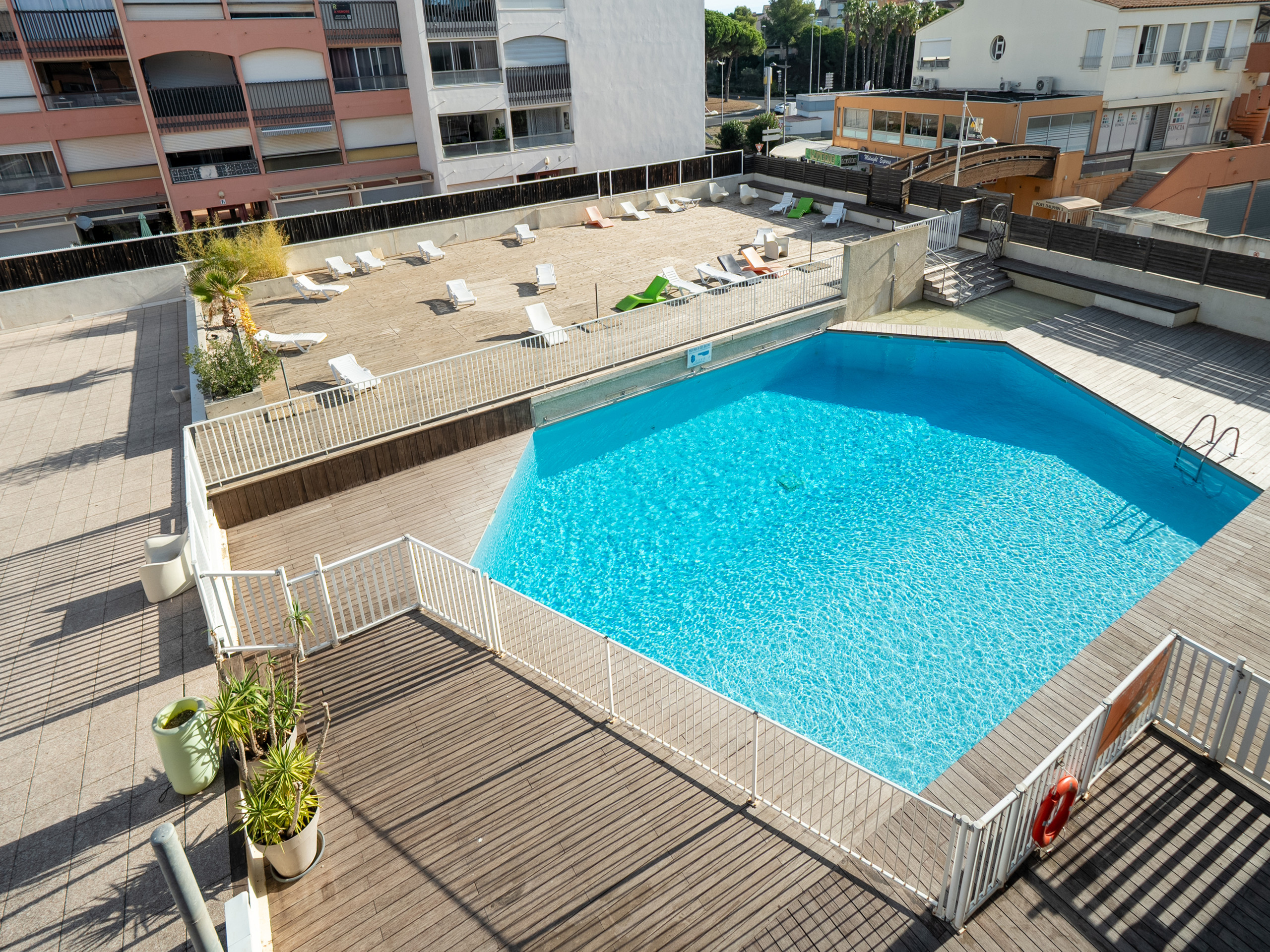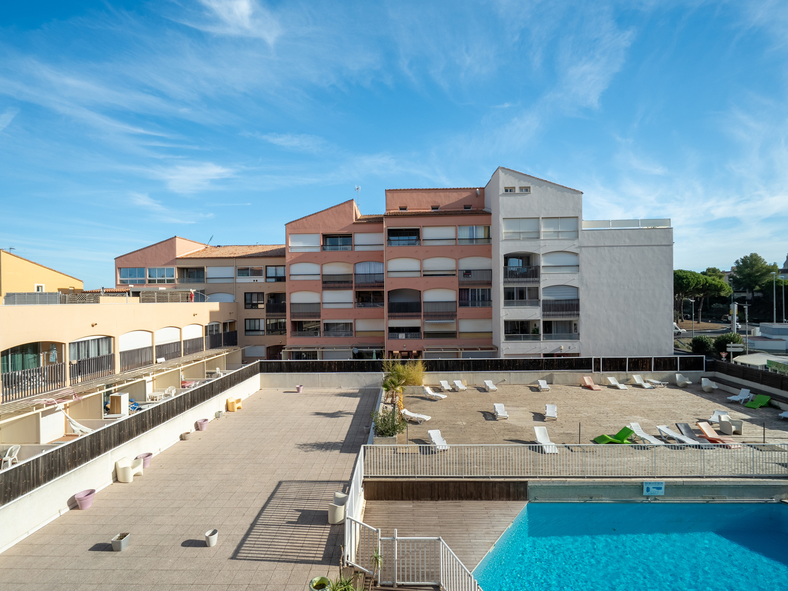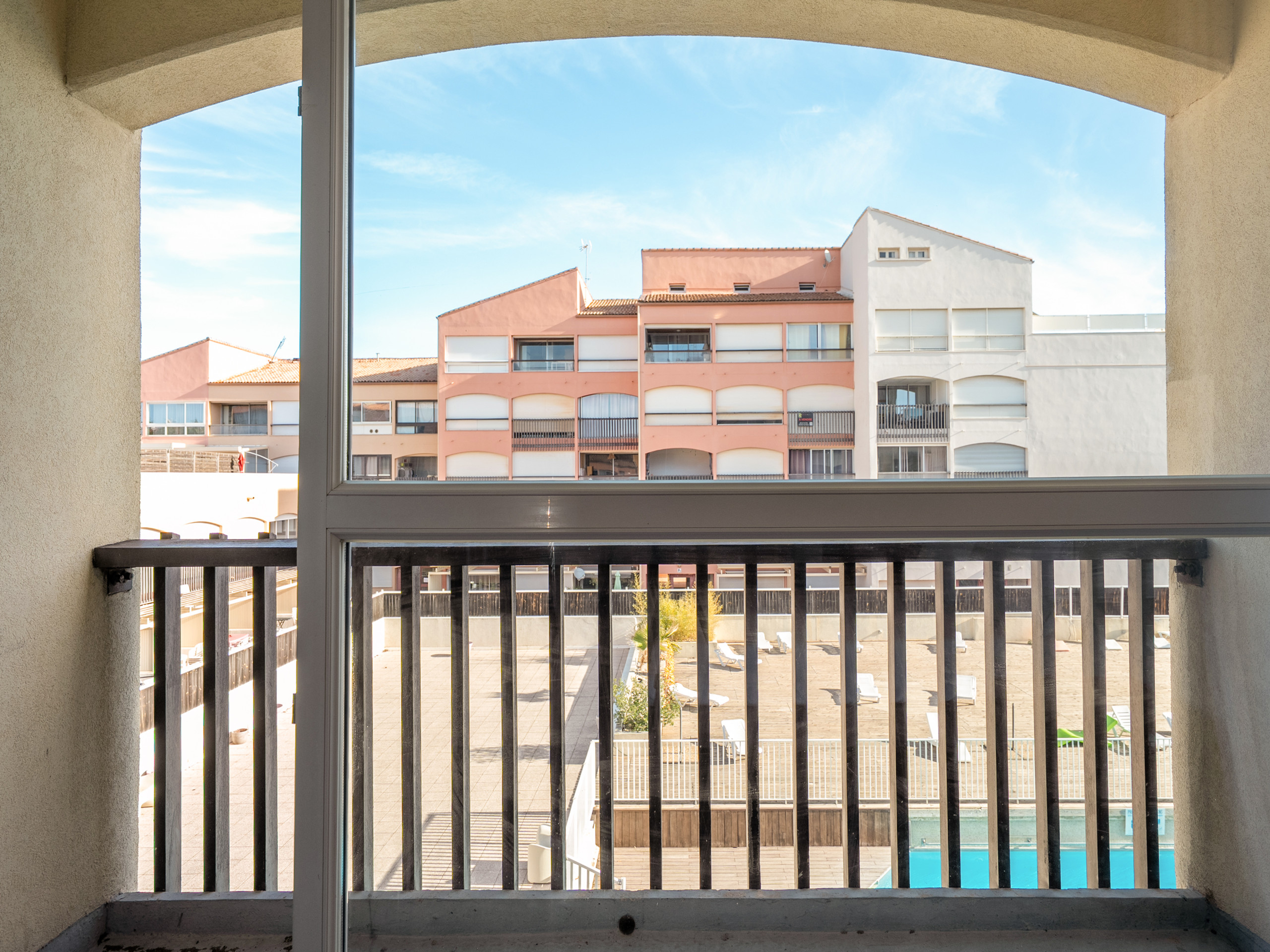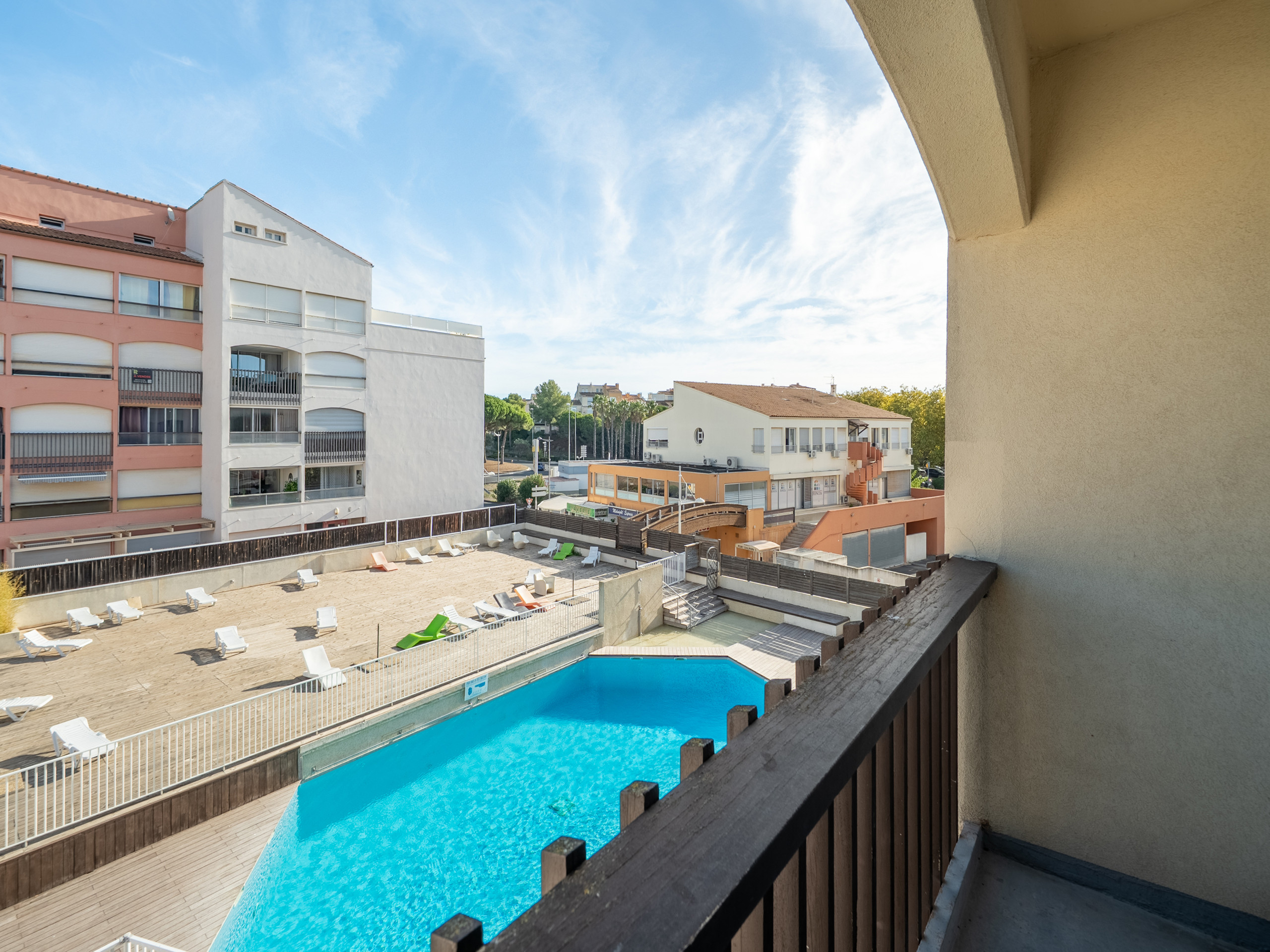 Pleasant balcony with a view of the residence's swimming pool