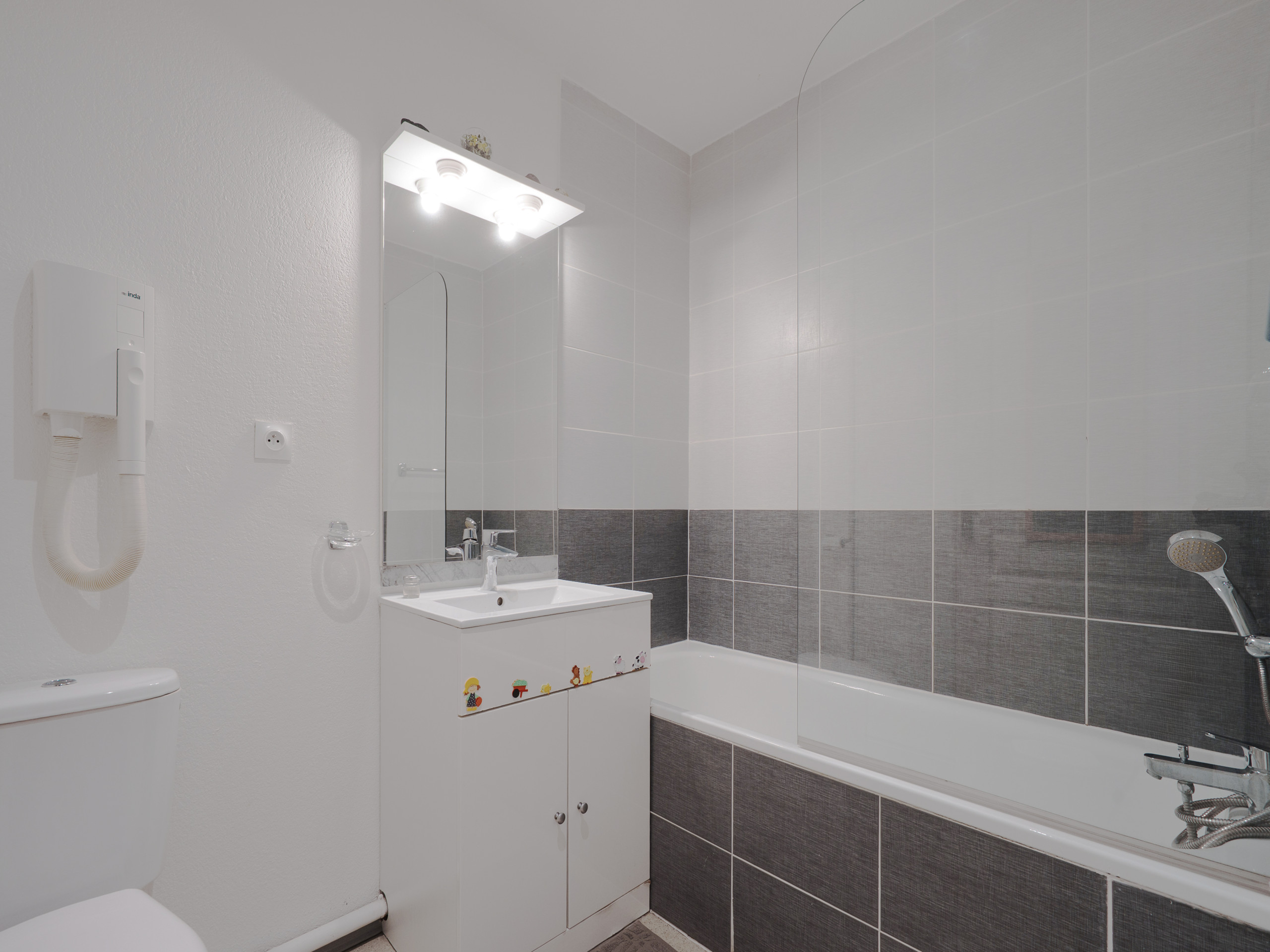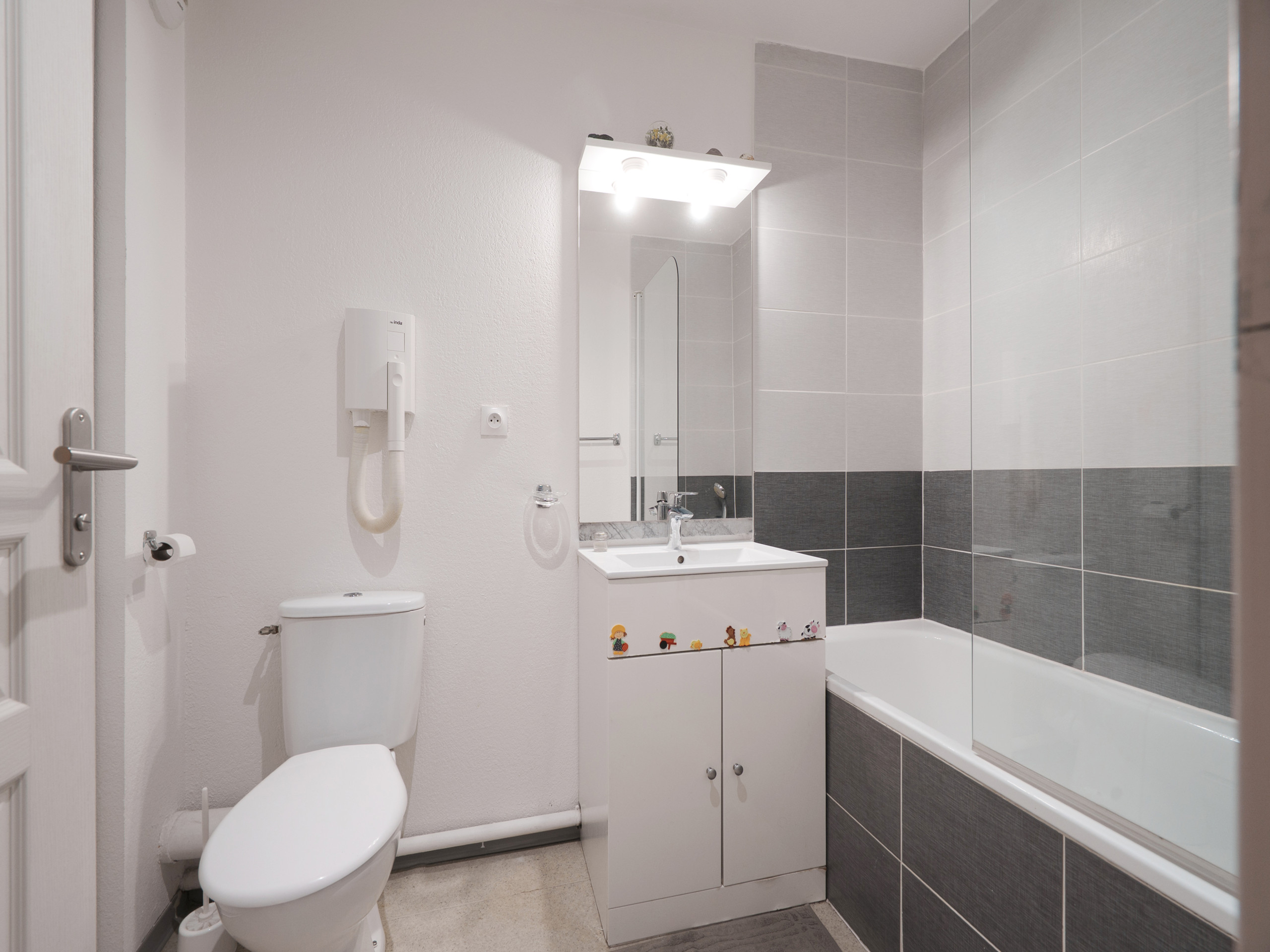 - Bathroom: Bathtub with toilet in the bathroom, hairdryer.