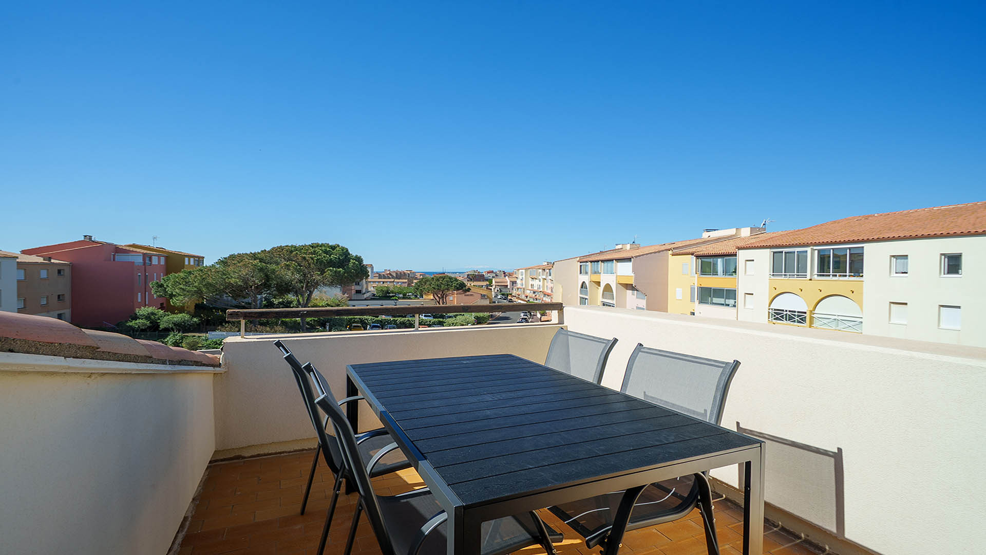 Loggia : Espace extérieur de 6 m² avec mobilier de jardin pour profiter du soleil et de la brise marine.