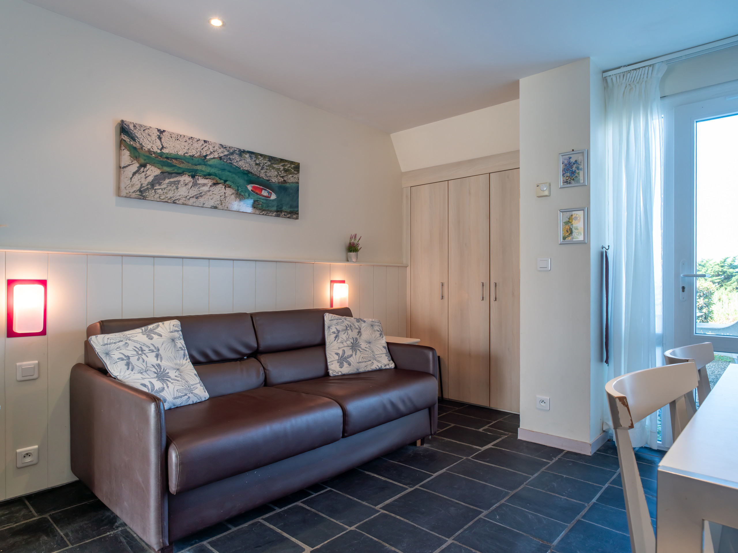 Séjour : canapé convertible 2 personnes, idéal pour des soirées cocooning devant une série ou pour dormir bercé par l’air marin.