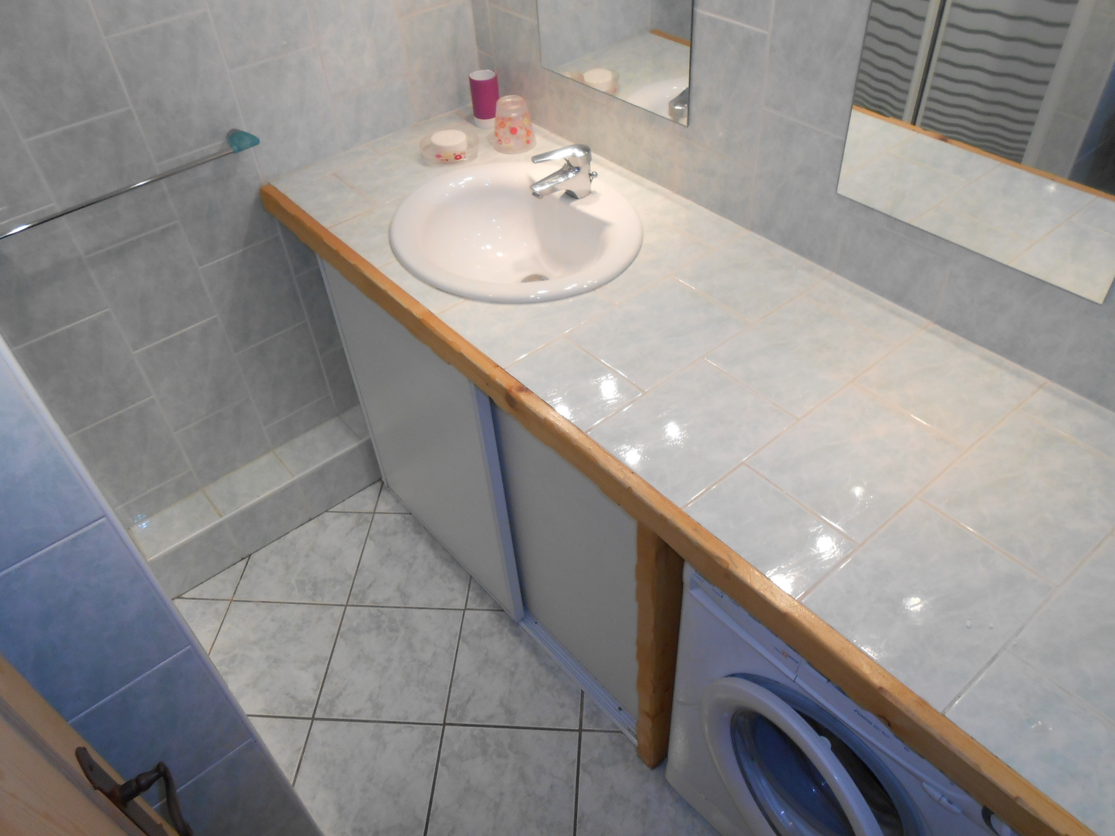 - Salle de bain avec douche et machine à laver