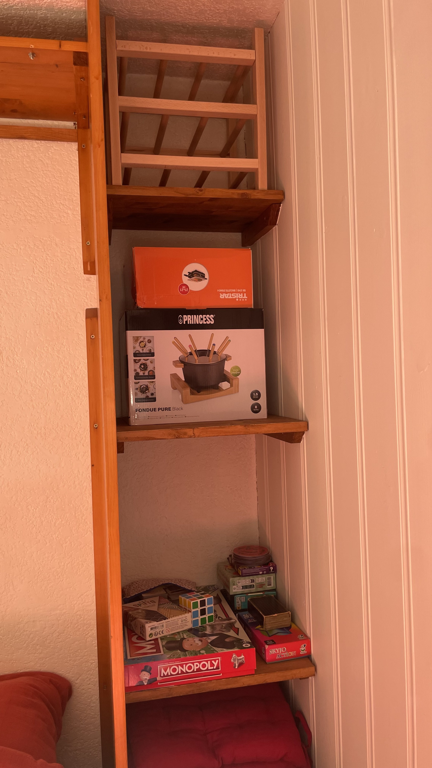 - Jeux de société, casier à skis, appareil à raclette/fondue, étendage.