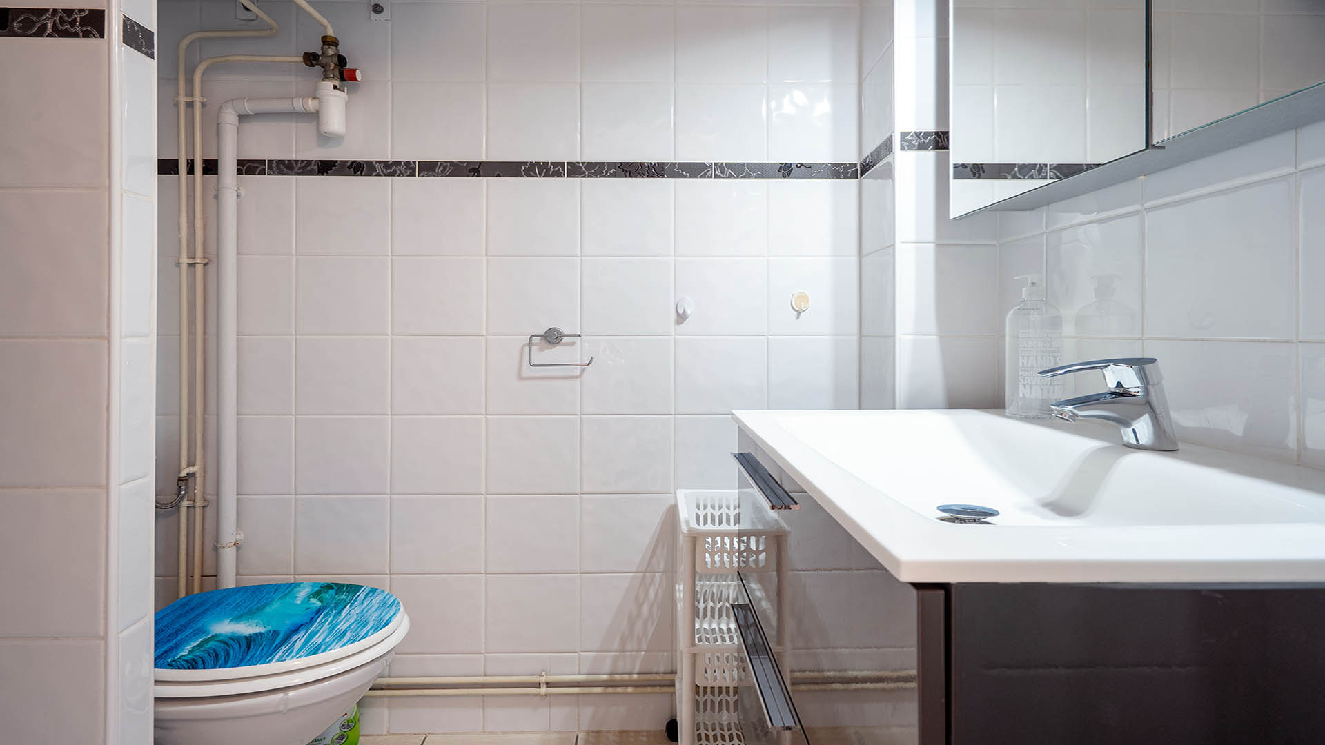 Salle de bain : équipée d’une douche, d’un sèche-serviette – simple, pratique et efficace !
