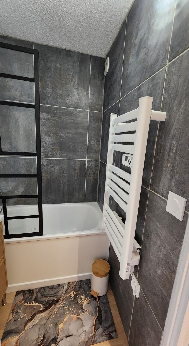 Salle de bain : baignoire, sèche-serviettes