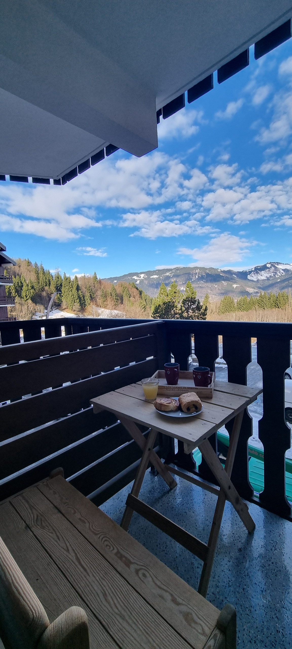 BALCON : 2 m² avec mobilier de jardin et superbe vue sur la montagne